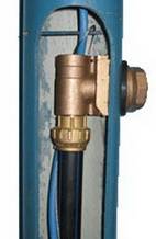 Скважный адаптер устанавливается на обсадной колонне (скважинной трубе) на глубине 1,8 метра, т.е. ниже глубины промерзания грунта. На поверхности остается только устье скважины с установленным на него оголовком (герметичной крышкой) и электрокабелем.